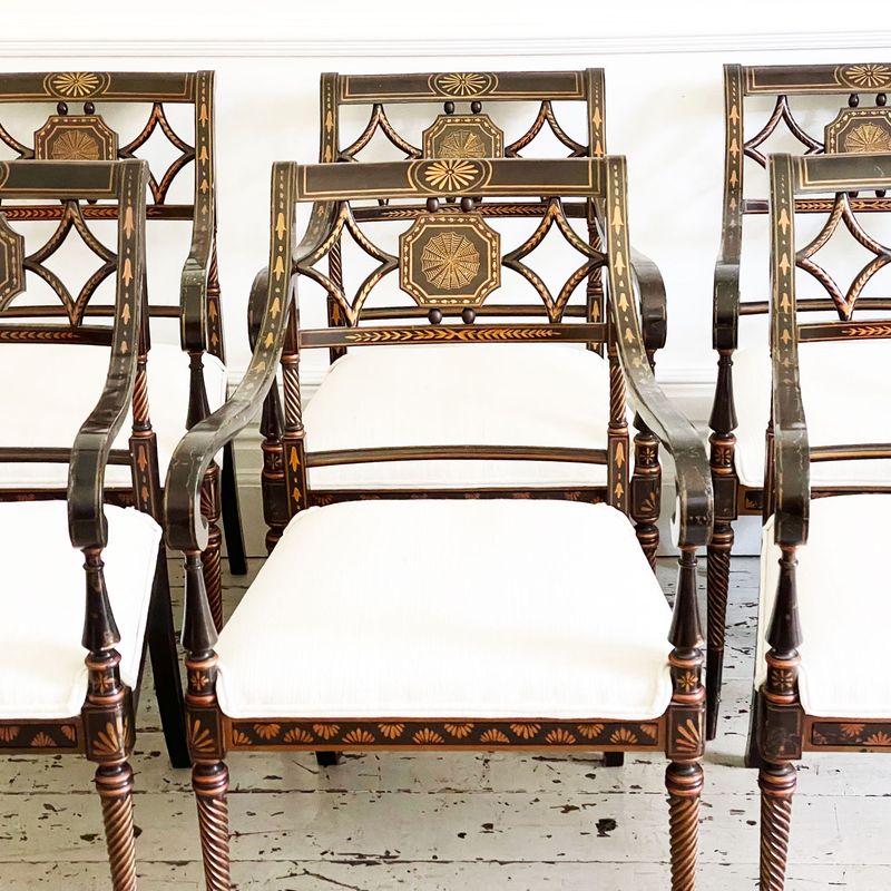 A Set of 6 1950's Regency Style Dining Room Armchairs