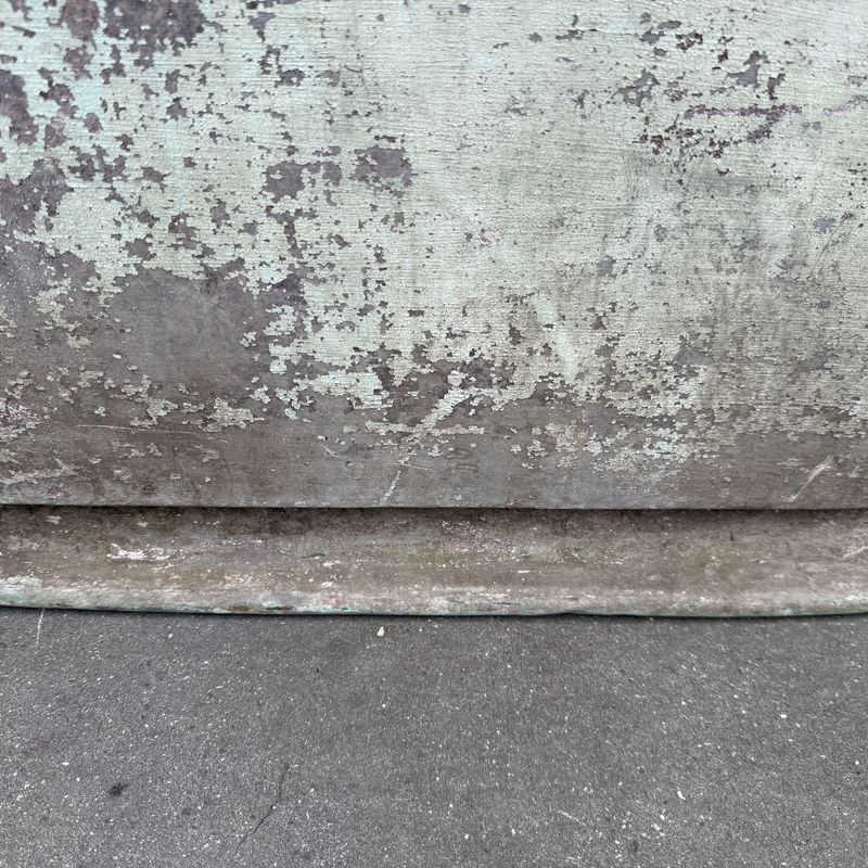 Antique French double ended copper bath that has developed a lovely patina with old flaky paint to the exterior.