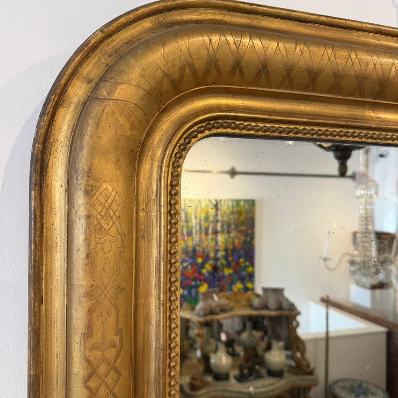 French Louis Philippe arch top mirror with subtly incised decoration.