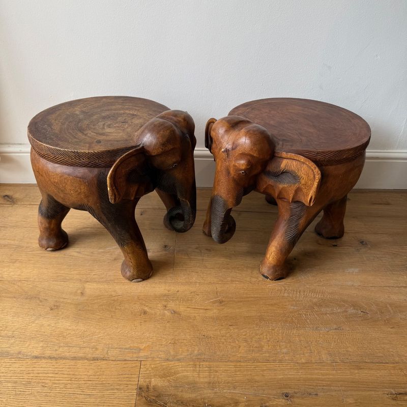 Pair of hardwood elephant side tables